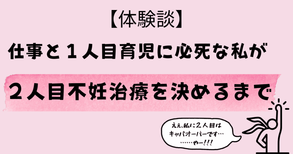 「子どもがいるママって、転職で不利なのかな…?」 そんな不安を抱えながら、私は34歳で3歳児育児中に転職活動をしました。 夫の転職、引越しに伴うタイミングで、正社... 妊活【体験談】仕事と一人目育児に必死なワーママが2人目不妊治療を決めるまで